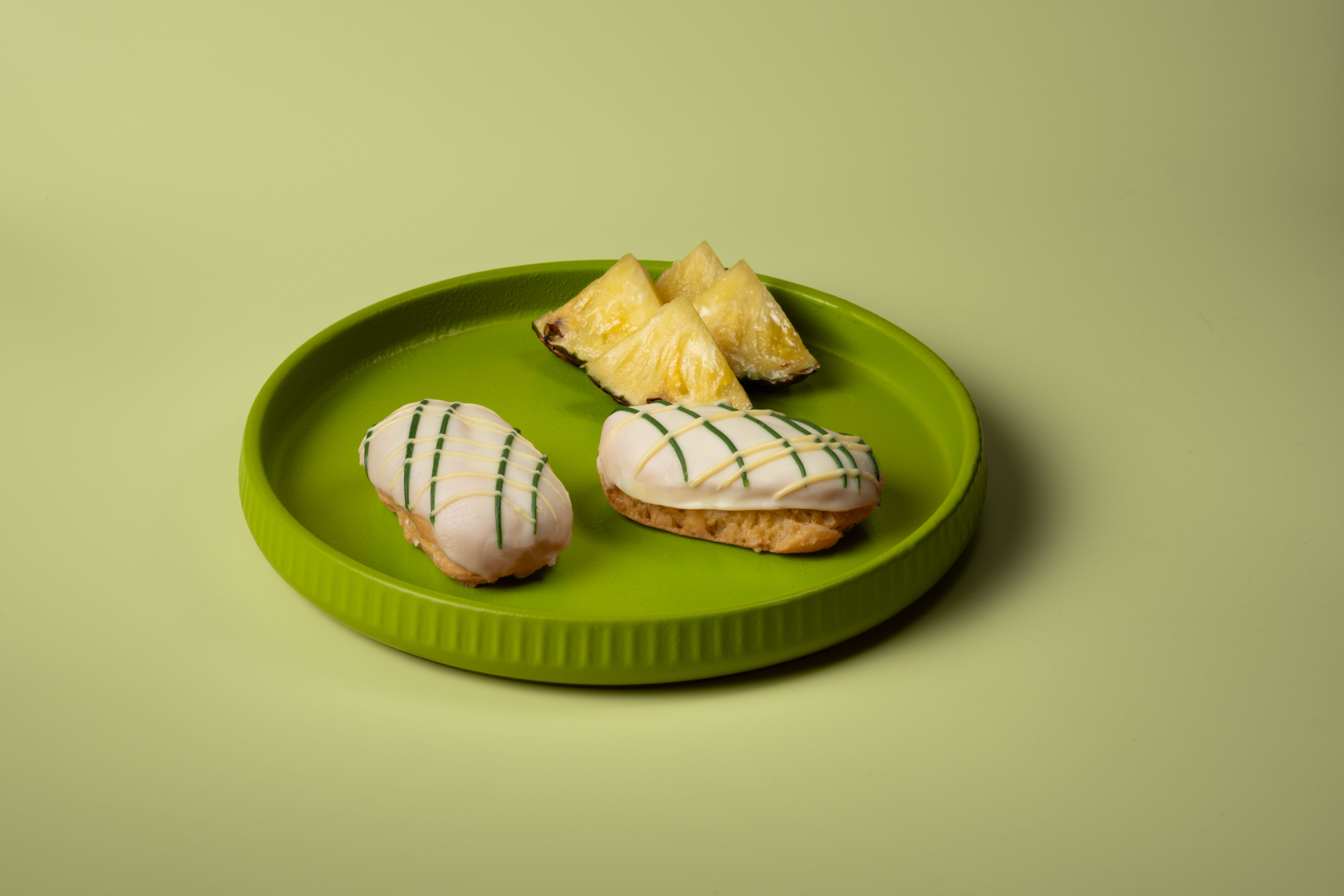 Tatlı ve ekşi aromasıyla yaz aylarının en sevilen tropik meyvelerinden ananas, ekler hamurunun yumuşaklığıyla buluştuğunda ortaya tropik bir lezzet patlaması çıkıyor. Ananaslı ekler, hem görselliği hem de lezzetiyle büyüleyecek ve sizlere unutulmaz bir tatlı deneyimi yaşatacak.